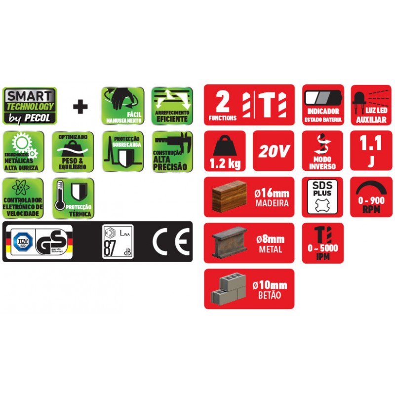 A máquina vem com sistema de protecção térmica e de sobrecaraga para salvaguardar a integridade do equipamento.