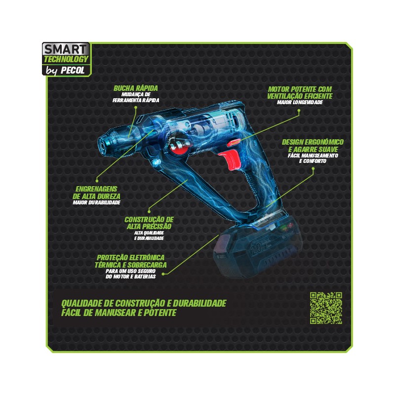 Equipada com sistema de controlo variável de velocidade garante um ótimo controlo e precisão durante o trabalho.