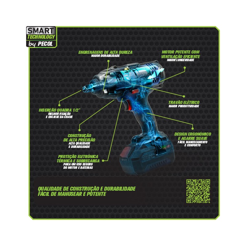 - Tensão da bateria: 20V