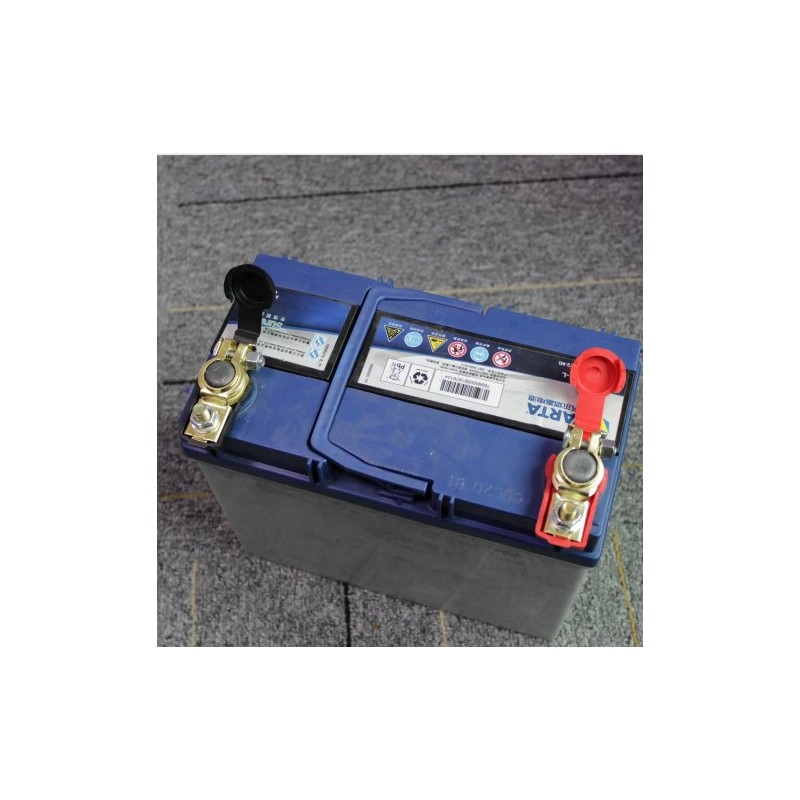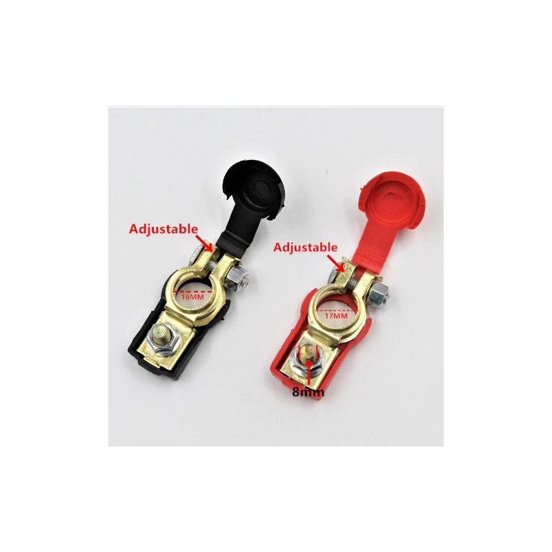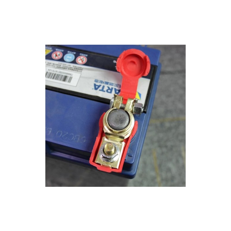 - Capa vermelha para conectar com o terminal positivo da bateria e capa preta para conectar com o terminal negativo da bateria