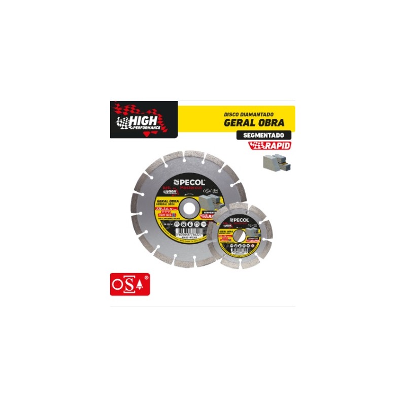 Disco diamantado para corte de vários tipos de substratos usados na construção comum bom desempenho no corte de materiais de média-baixa dureza.