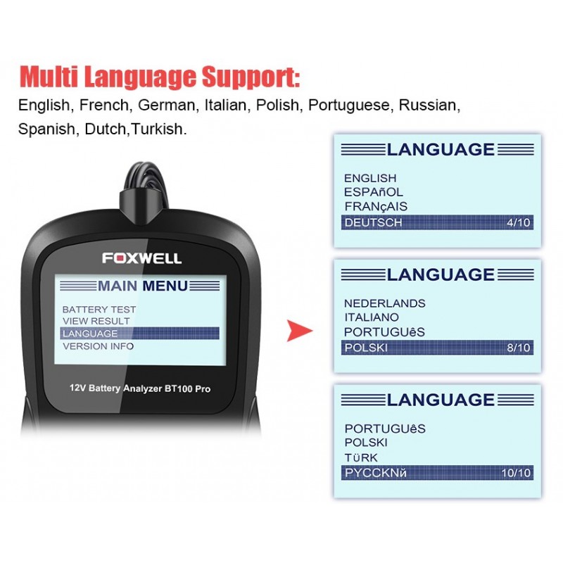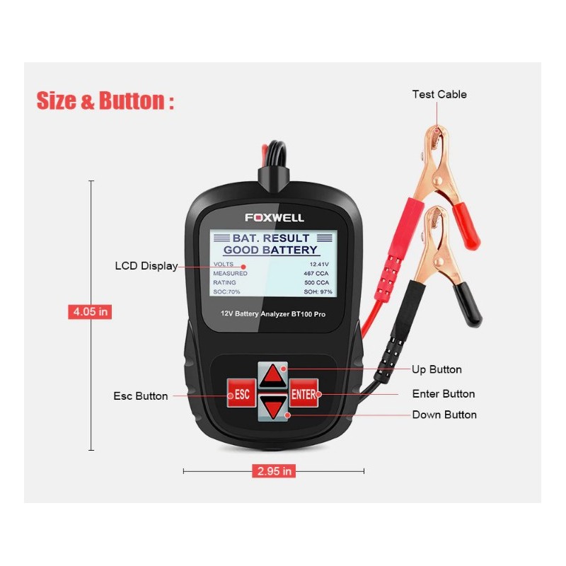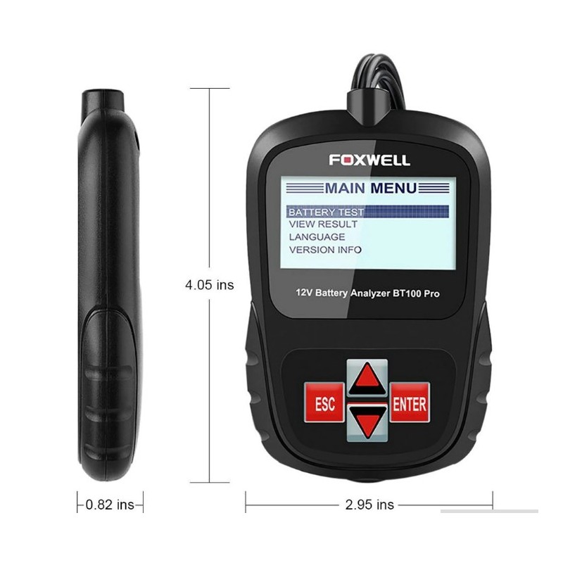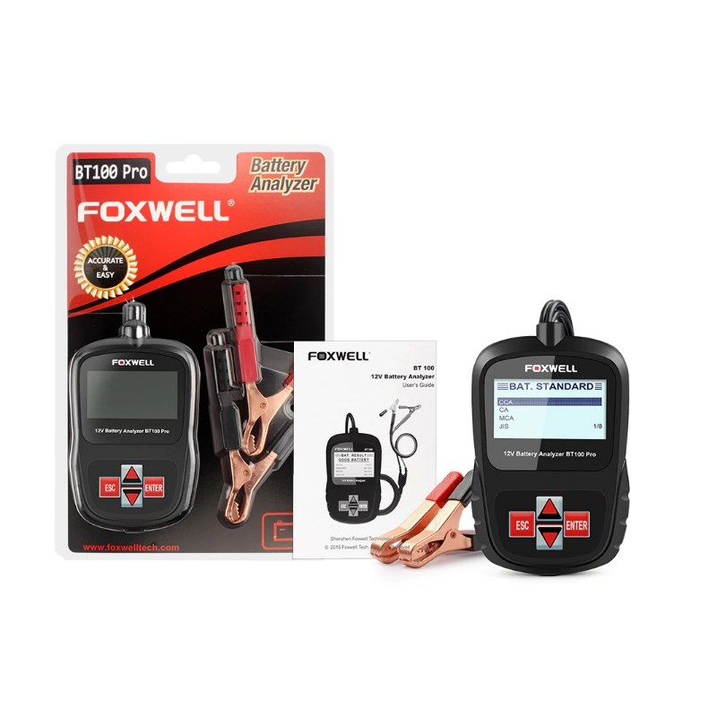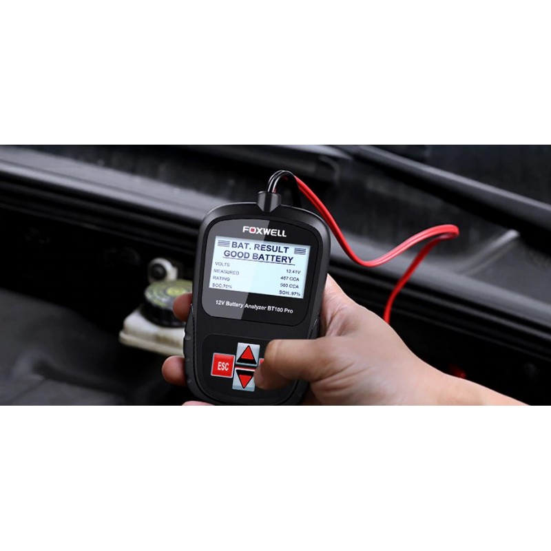 FOXWELL BT100 PRO é um aparelho portátil para teste de baterias de 6V a 12V, viaturas a diesel ou gasolina.