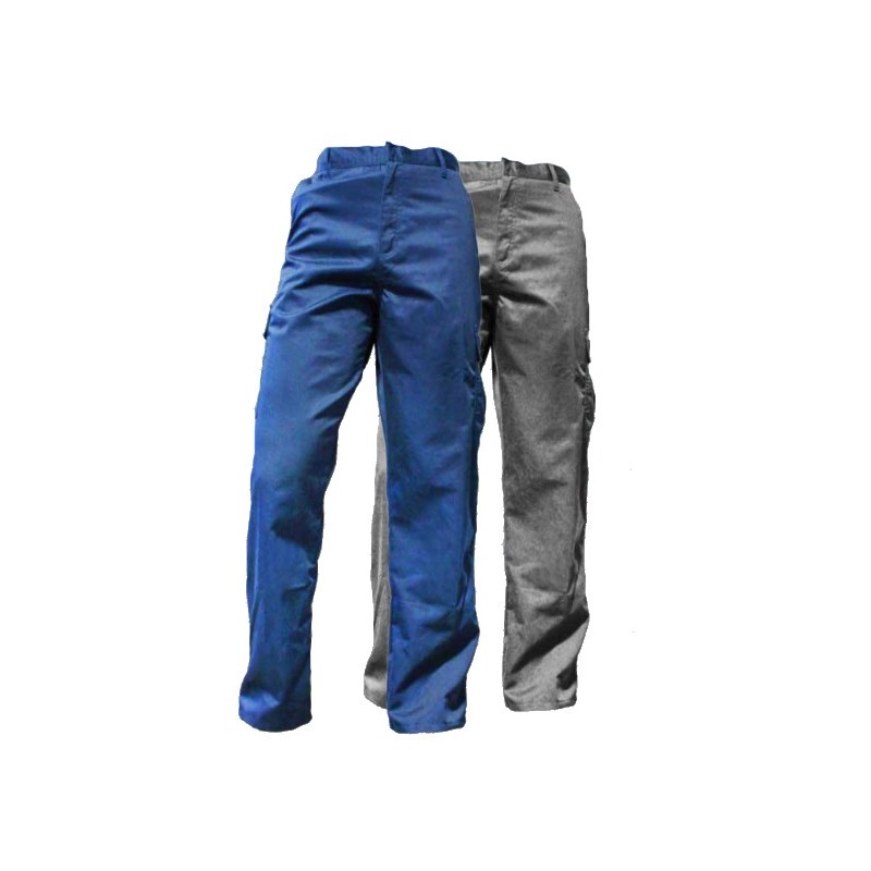 Calça em policotton (65% poliéster / 35% algodão) com cintura elástica em ambos os lados para melhorar o conforto. Dispõe de 6 bolsos. Disponível em azul e cinza.